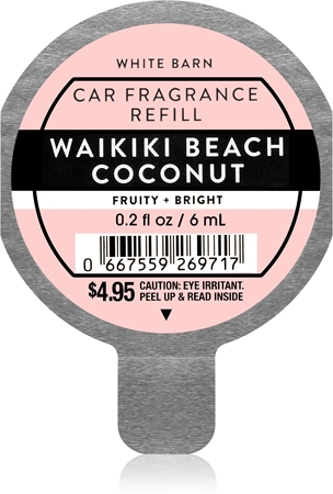 Описание Bath & Body Works Waikiki Beach CoconutСоставкокос, морской бриз, древесные нотыТип комнатного парфюмасладкий Подумайте заранее о комфорте и приятных ощущениях во время вождения. Сменный блок автомобильных духов Bath & Body Works, хранящийся в перчаточном ящике, позволит вам непрерывно наслаждаться парфюмом во время путешествия. Особенности: приятный аромат, который сохраняется долгое время внутри каждого автомобиля, быстро и легко. Удобный способ попробовать больше духов во время поездки. годКак использовать: